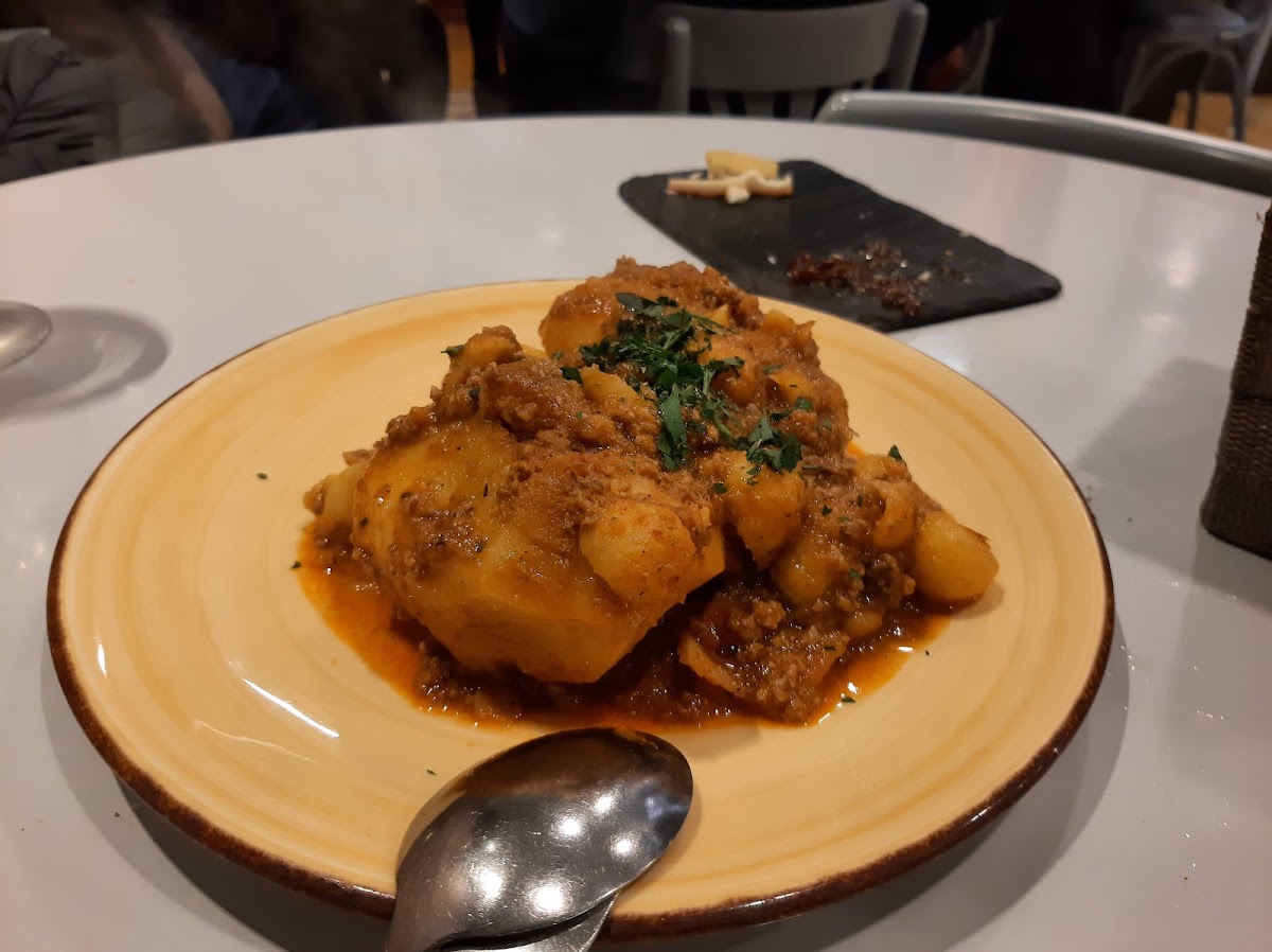 Mostly local cuisine with a special selection of ham/jamon and very good wines. We had “papas arugadas con majo”, and “papas rellenas de carne”