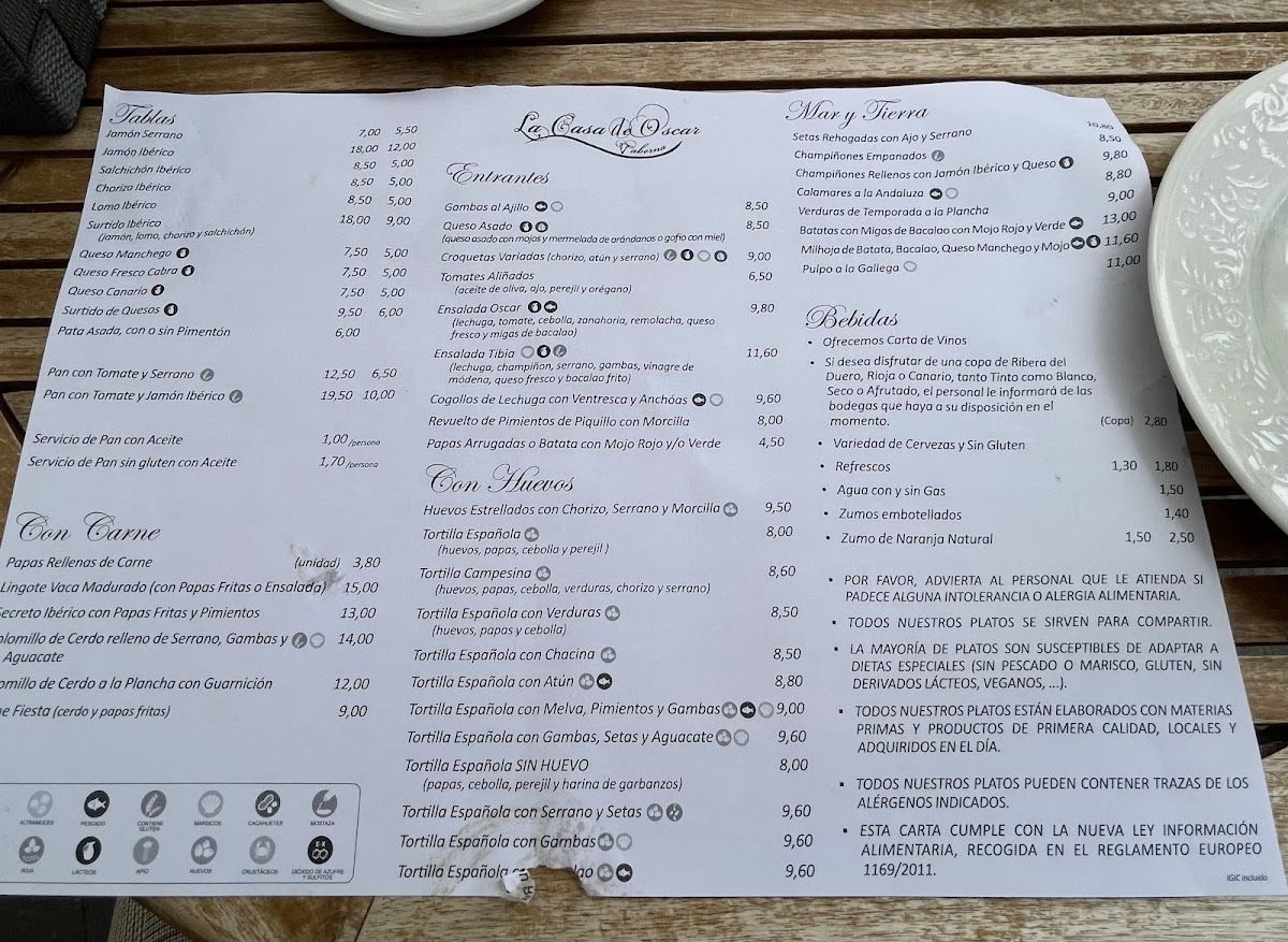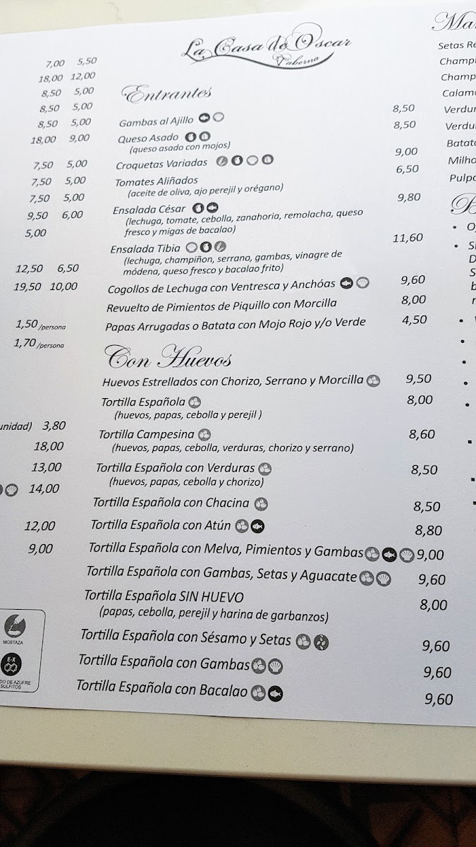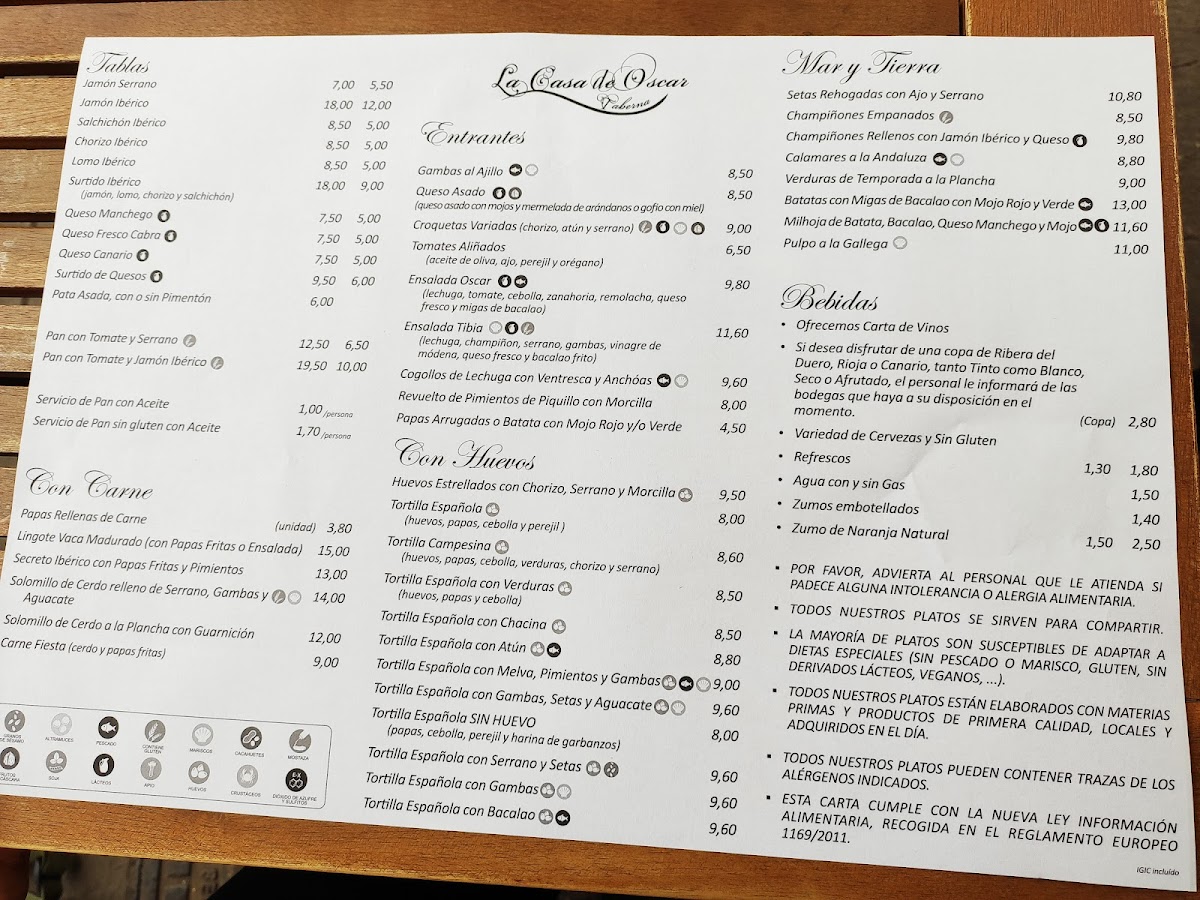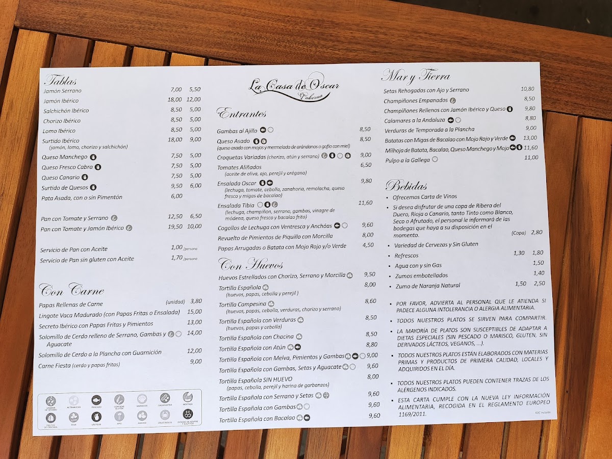 Taberna La Casa De Oscar Menu