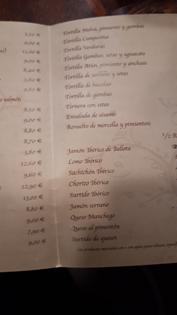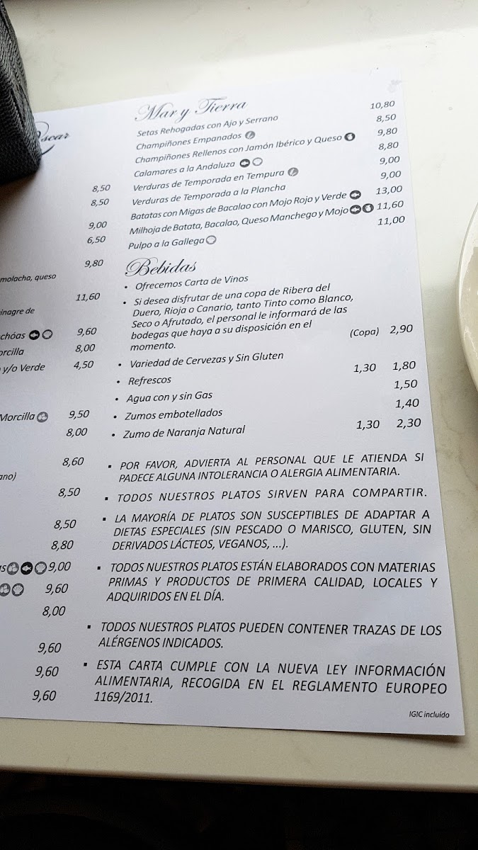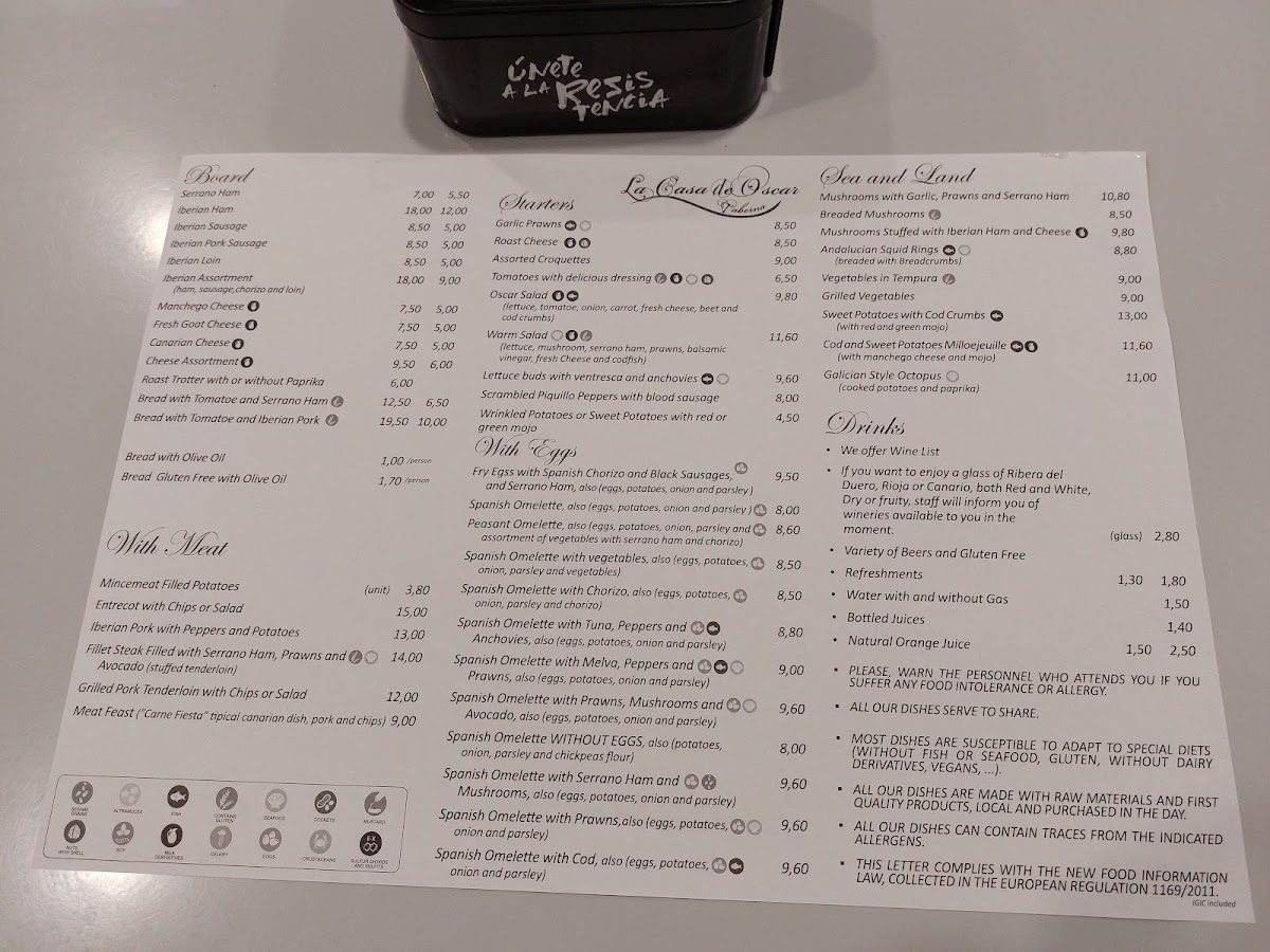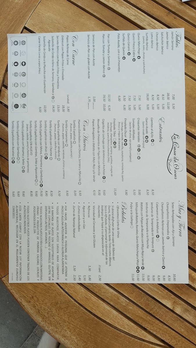 Taberna La Casa De Oscar Menu